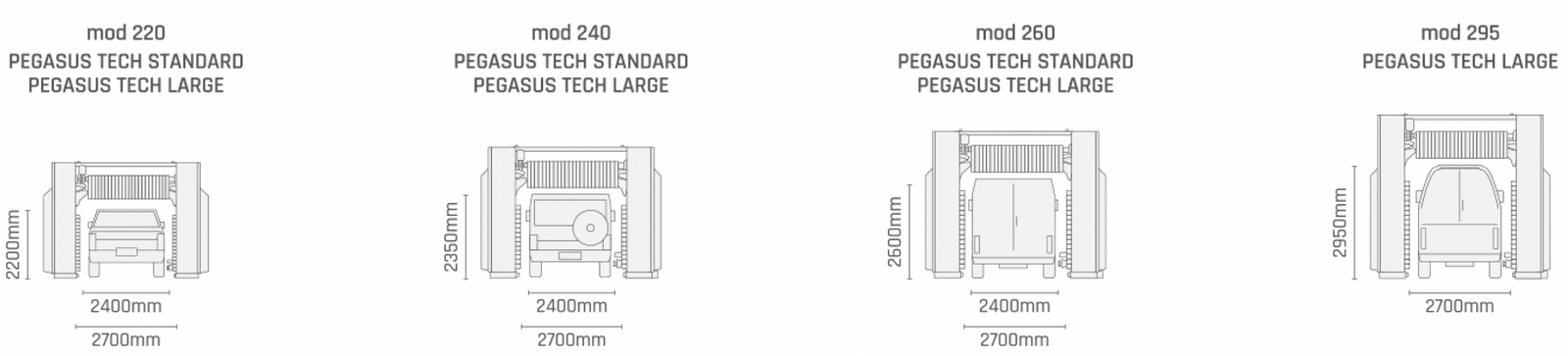 Thanks to a set of photocells, Profile Control Tech precisely detects and stores the profile of the vehicle and the particular shapes, instantly adapting the washing and drying components fluidly and without stops.